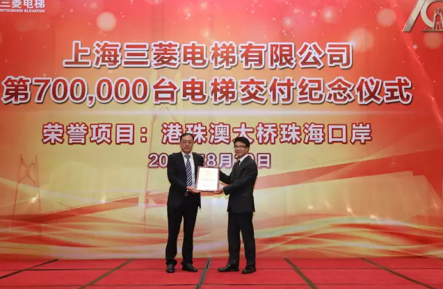 8月30日,上海三菱电梯有限公司第70万台电梯交付纪念仪式在珠海举行。上海电气(集团)总公司党委书记、董事长黄迪南,三菱电机株式会社社长柵山正樹、上海三菱电梯有限公司总裁万忠培等领导出席了本次仪式。